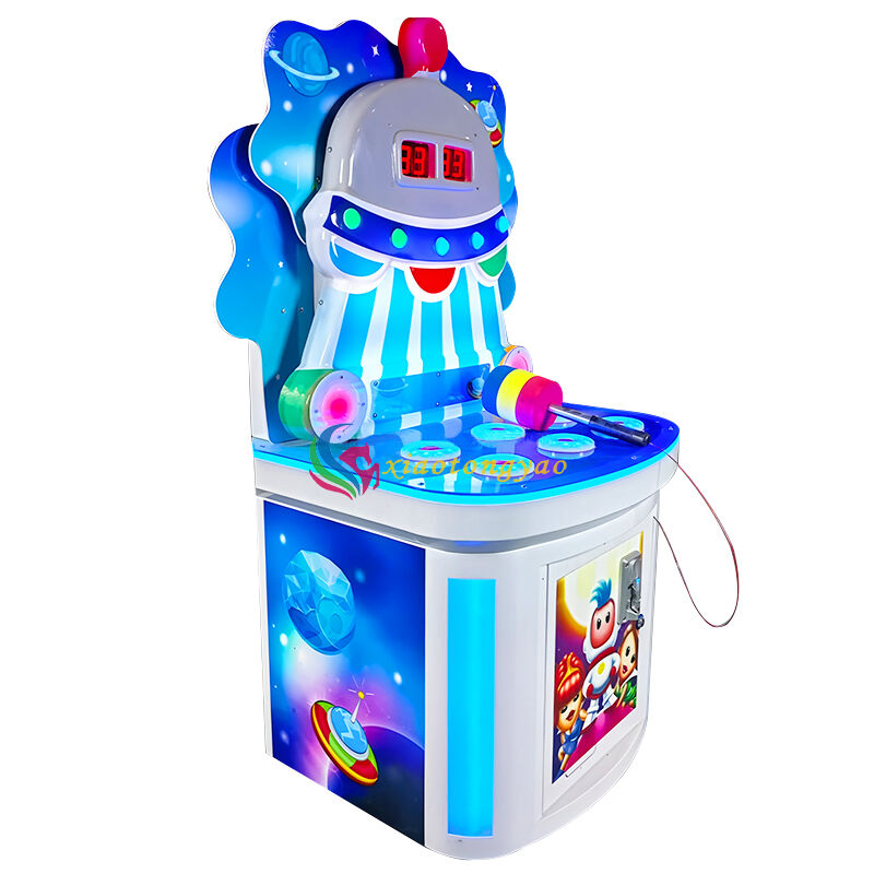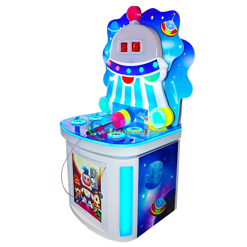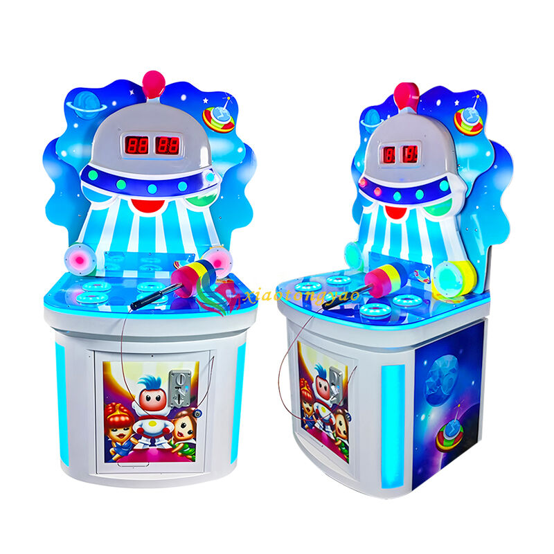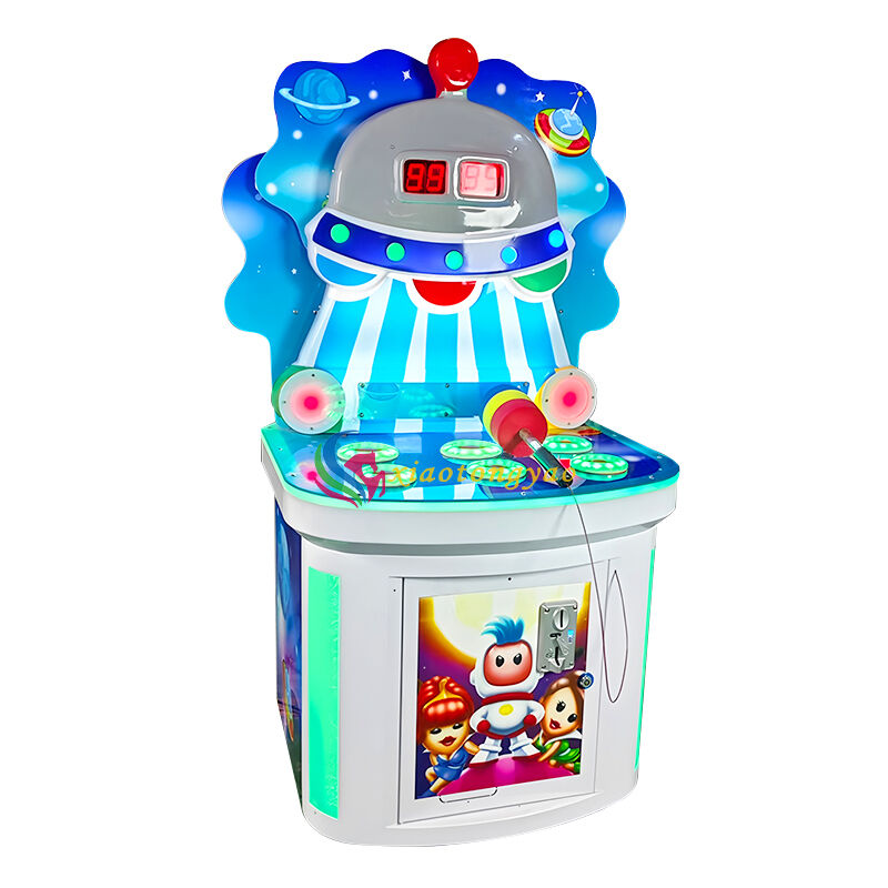 This is a fun groundhog game console designed specifically for young children, with the core theme of "interstellar flying saucer", cleverly integrating cute aliens with space elements to create interactive entertainment scenes full of science fiction. The whole machine adopts a round and safe shape with soft lighting and sound effects, combined with a colorful soft hammer design, allowing children to exercise their hand eye coordination ability in a cheerful tapping rhythm. It is a popular and eye-catching children's playground equipment in shopping malls, amusement parks, and parent-child centers.