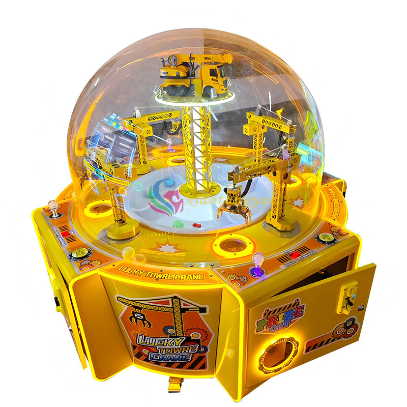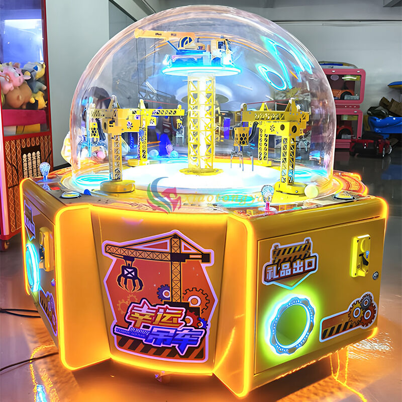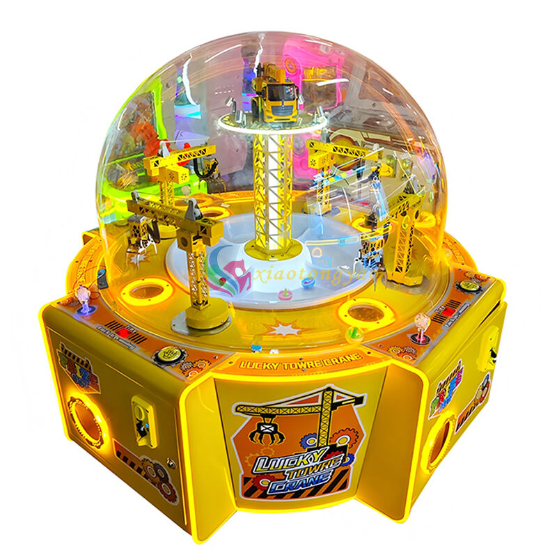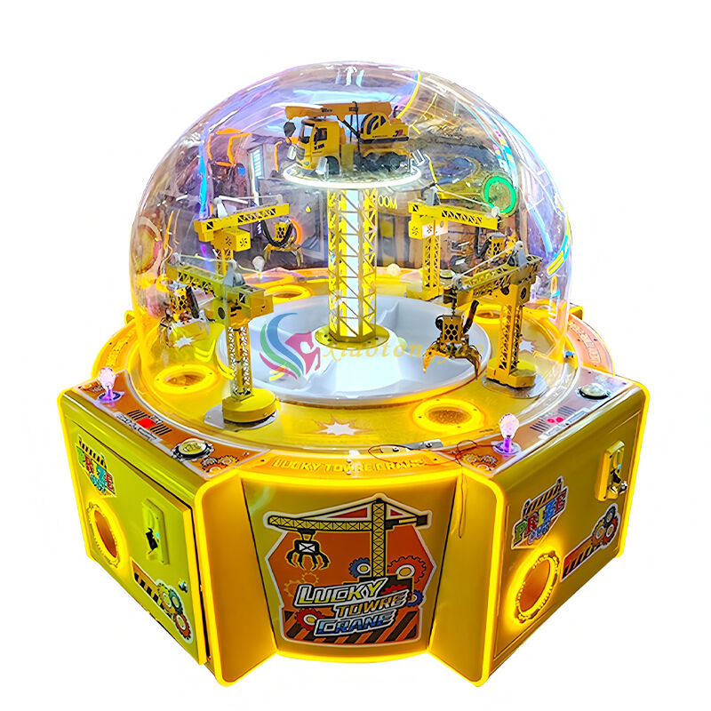 The "Lucky Tower Crane" is a four person circular gift machine designed specifically for video game arcades and parent-child amusement parks. With an engineering tower crane as the core visual element, it is paired with a transparent dome cover and colorful lighting to create an extremely attractive immersive experience. It supports four players to operate simultaneously, grabbing gifts by manipulating the mechanical claws of the tower crane. The gameplay is simple and easy to learn, suitable for parent-child interaction and meeting the social and entertainment needs of young people. It is a popular device for attracting traffic and increasing revenue.