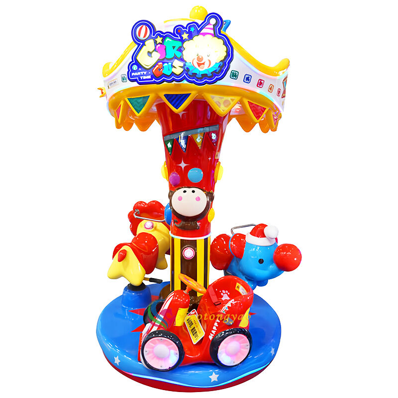 Circus Three Person Mini Carousel Cute Animal Theme, Three People Riding Together to Unlock Childhood Fun Time