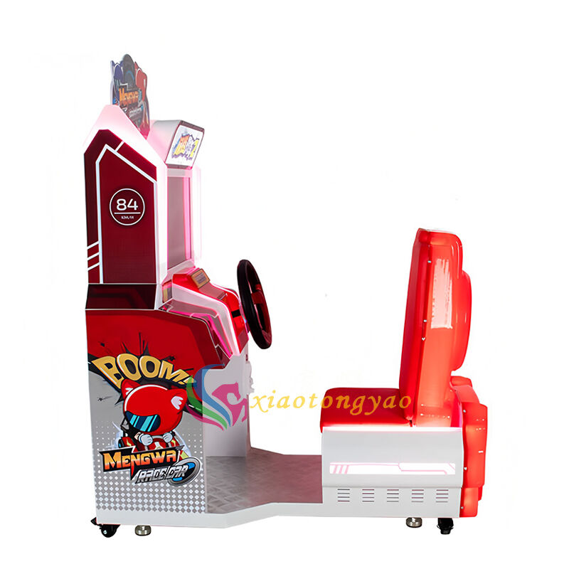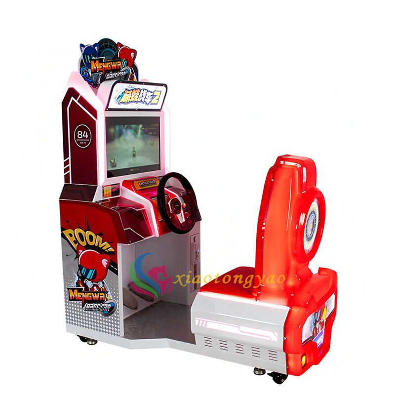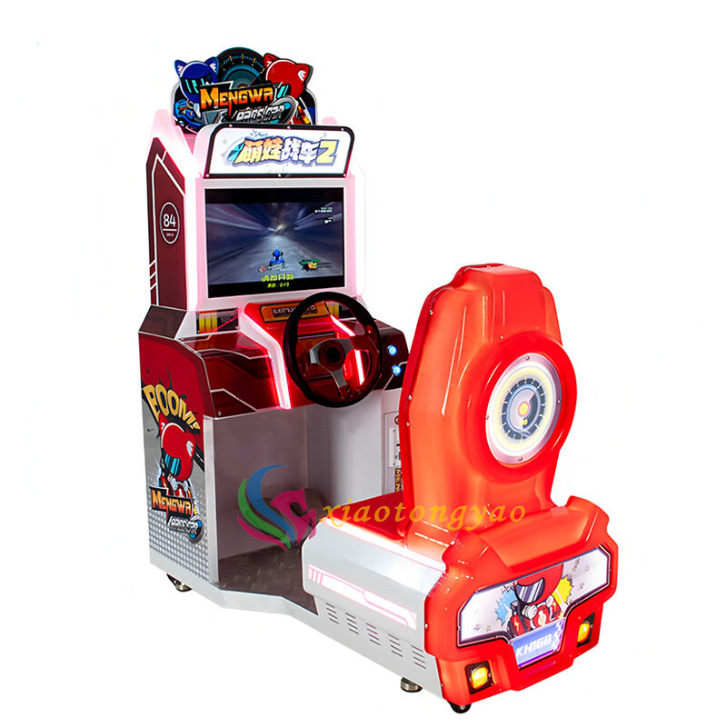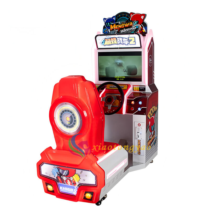 This cute child tank 2 children's racing game machine is a fun racing and amusement equipment specially designed for young children. With Q cute cartoon racing as the theme, paired with a red and white dynamic body and a simulated cockpit, children can hold the steering wheel and step on the accelerator to experience a simple and easy to use racing experience. They can exercise hand eye coordination and reaction ability in joyful racing, making it a popular and popular product in children's parks, shopping malls' parent-child areas, and early education centers.