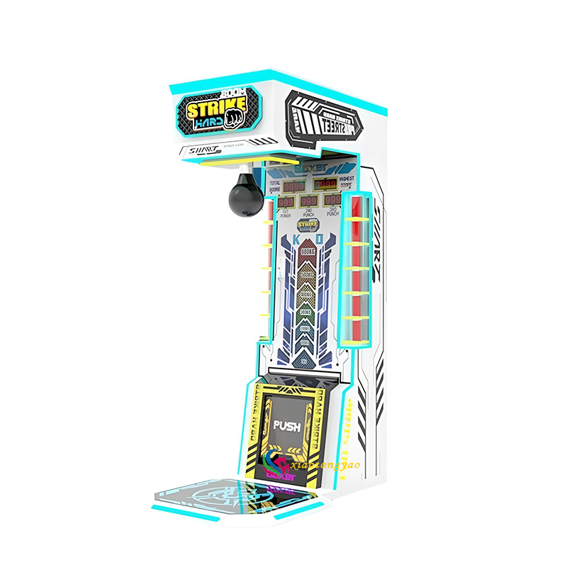 This is an immersive strength testing boxing game machine designed specifically for video game arcades, game halls, and shopping malls. With "street fighting" as the core theme, it integrates cool lighting, precise force measurement, and interactive scoring system, allowing players to feel the pleasure of releasing strength in the moment of punching and visually witness their boxing explosive power. The machine adopts an industrial grade durable structure and a trendy mecha appearance, which is suitable for solo challenges and can also meet the needs of multiple scenarios such as friend battles and team building interactions. It is a popular device that attracts people and increases venue revenue.