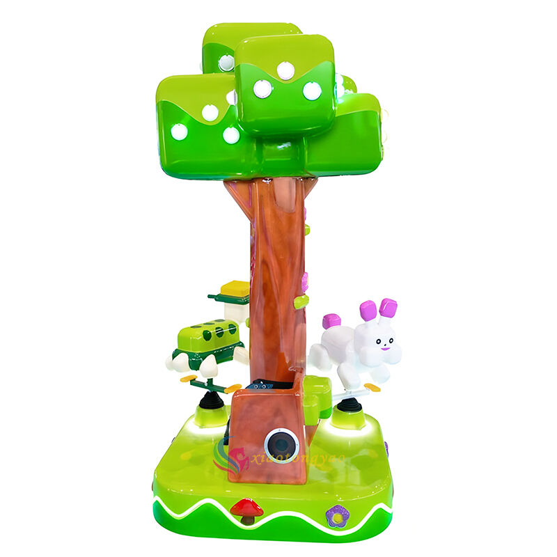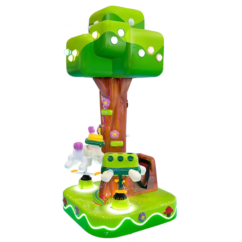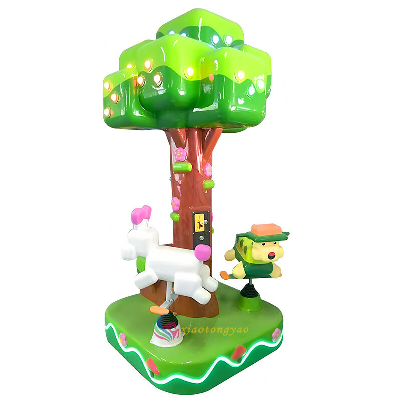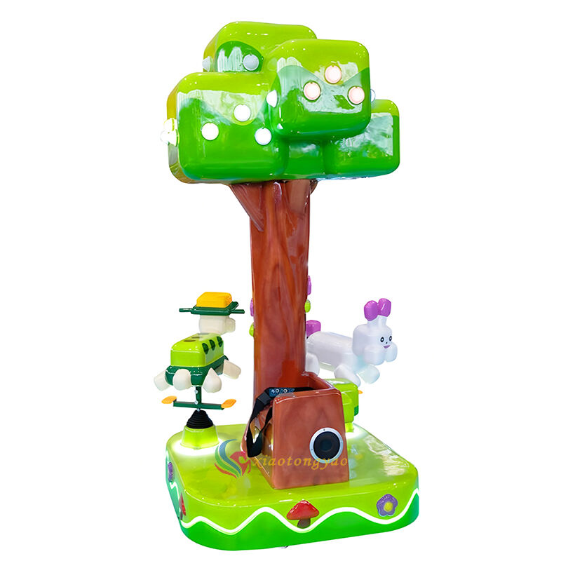 This is a mini three person carousel designed specifically for young children, inspired by the "Fantasy Forest Tree House" design. It incorporates playful elements such as big trees, cute rabbits, and little elves into the body, paired with a soft spinning rhythm and dreamy lighting. It can accommodate up to three children at a time, satisfying their curiosity and social needs while allowing parents to accompany them with peace of mind. It is a heartwarming and drainage tool for parent-child parks, shopping malls, mother and baby areas, and early education centers.