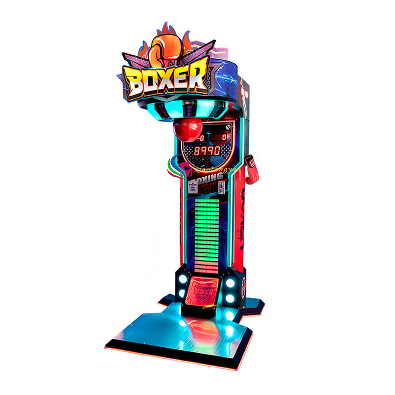Exterior Design: Trendy mecha style design, surrounded by colorful LED lights, and eye-catching "BOXER" logo, placed in video game arcades, shopping malls, and event venues, making it a popular check-in spot.