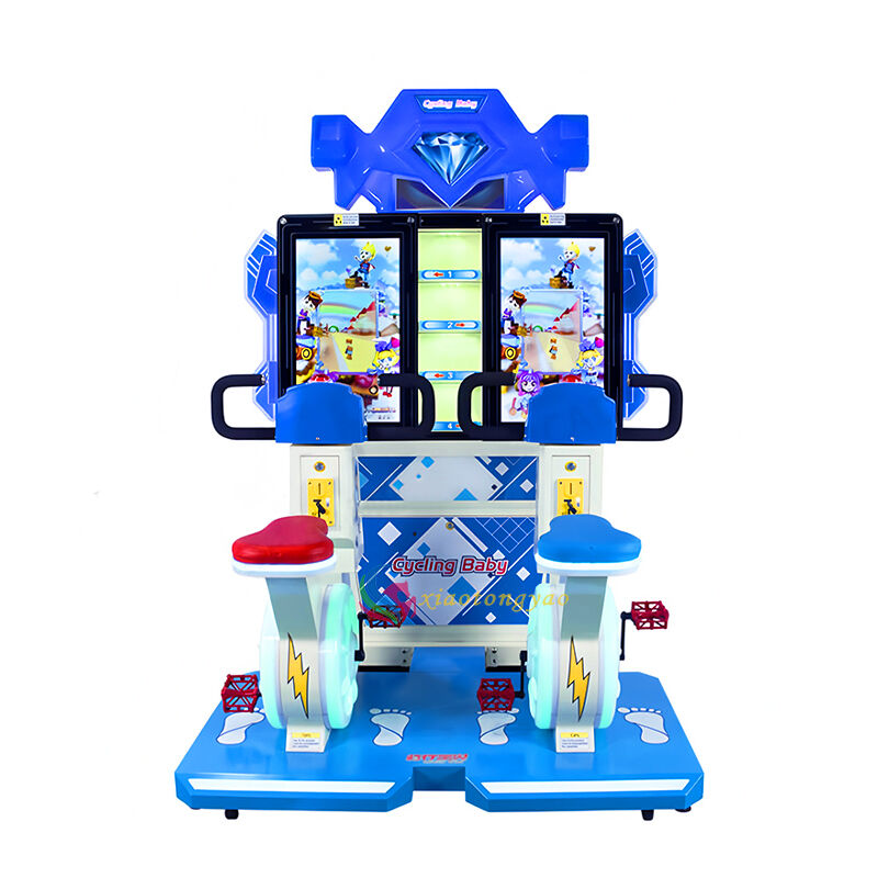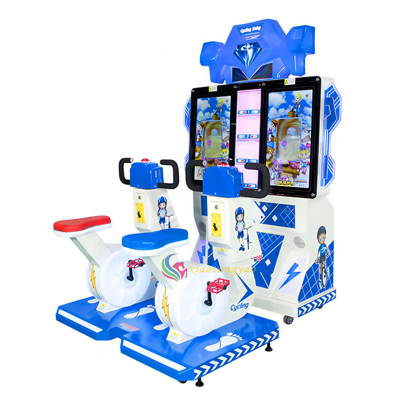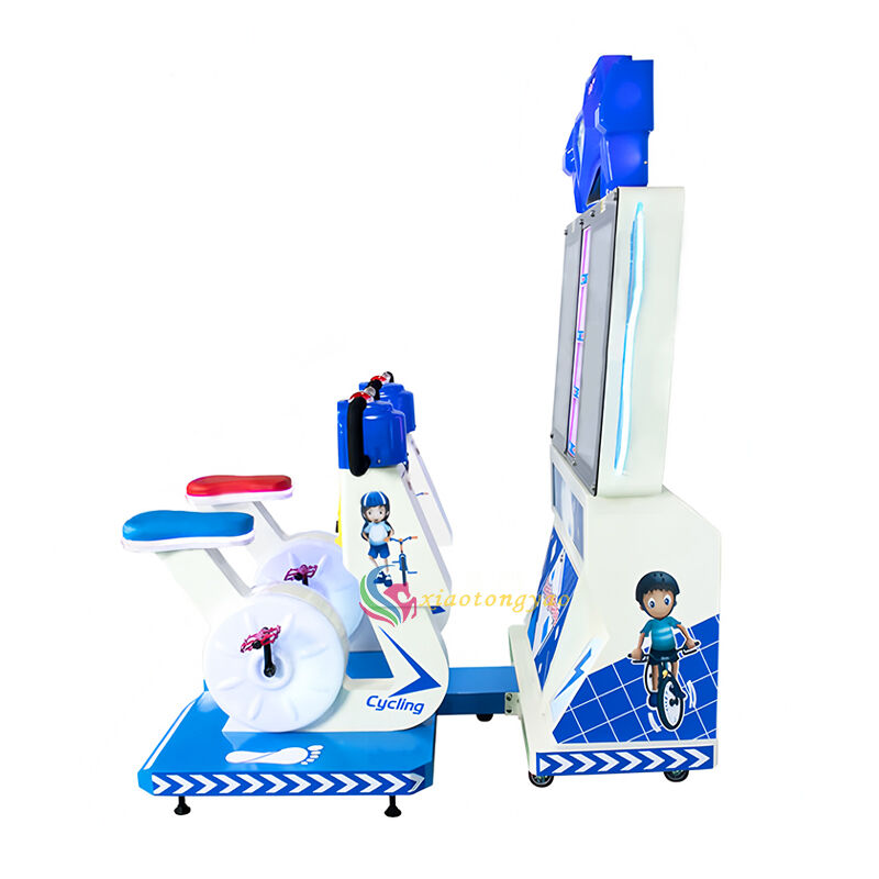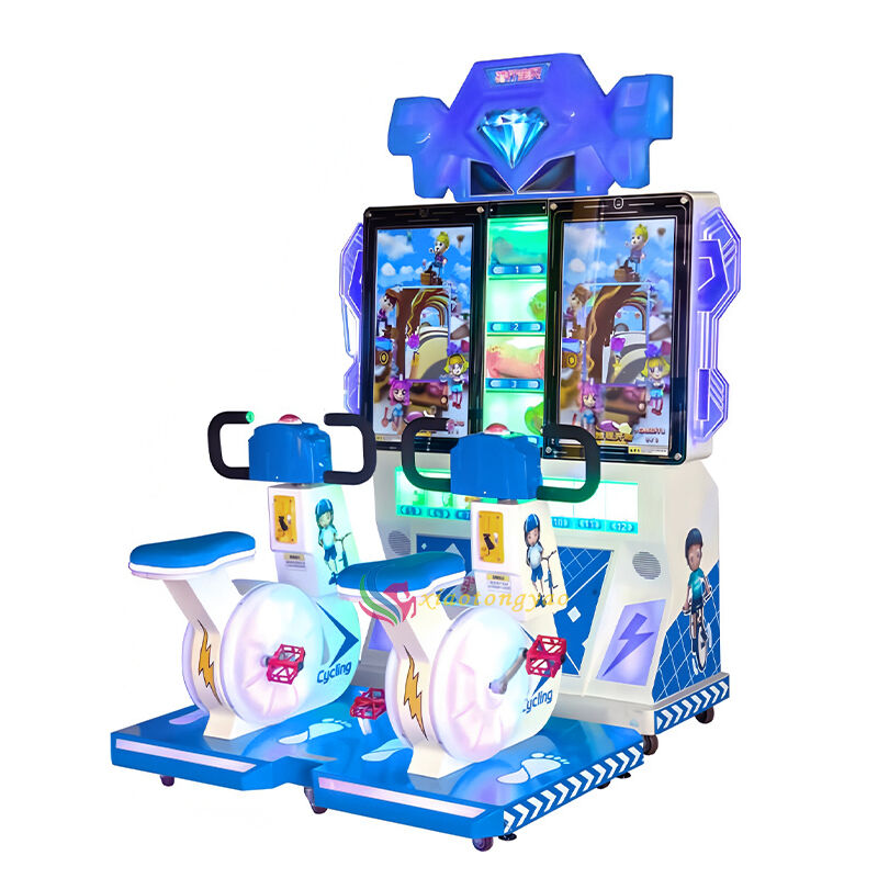 Mesin permainan basikal kanak-kanak untuk dua orang ini merupakan peralatan hiburan interaktif antara ibu bapa dan anak yang menggabungkan aktiviti sukan dan kecergasan dengan pertandingan yang menyeronokkan. Dengan tema berbasikal bertema fiksyen sains sebagai teras reka bentuknya, serta dilengkapi peranti berbasikal dua tempat duduk dan dua skrin berdefinisi tinggi, kanak-kanak tidak hanya dapat melatih koordinasi fizikal dan daya tahan mereka semasa proses berbasikal simulasi, tetapi juga dapat merasai kegembiraan persaingan dalam pertandingan dua orang (PK). Ia merupakan tarikan kesihatan yang popular di lokasi seperti taman permainan kanak-kanak, pusat membeli-belah, kawasan ibu bapa-anak, dan dewan pengalaman sukan.