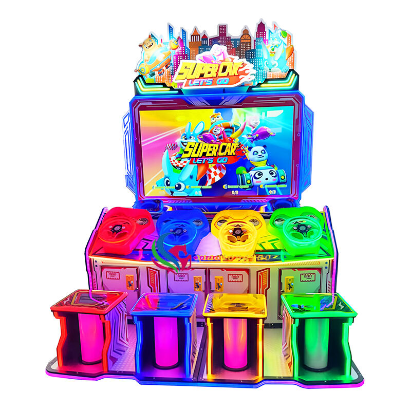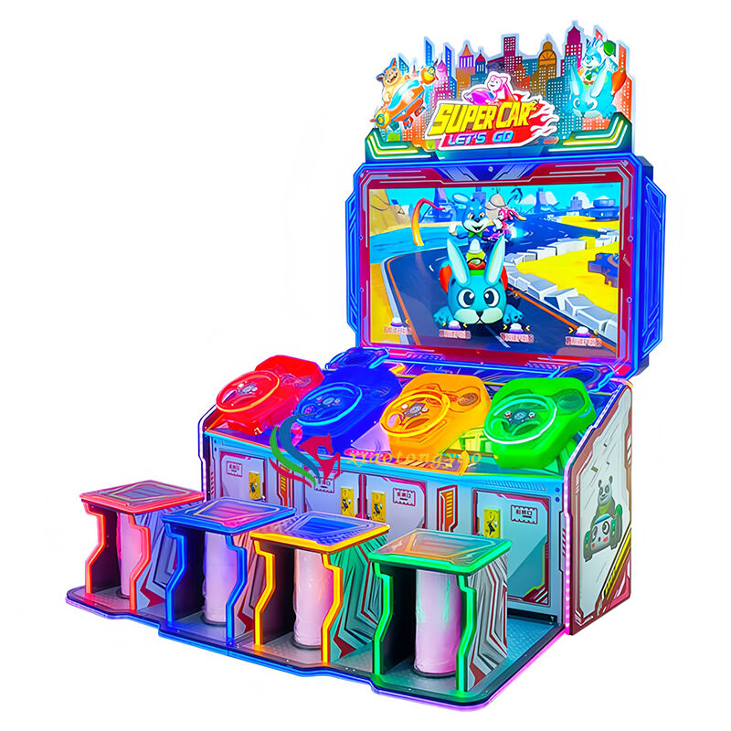 Featuring a cartoon pet racing theme, it boasts a 4-color independent steering wheel and dynamic seat design, supporting up to 4 players in simultaneous online battles. With dazzling lights, smooth tracks, and engaging interactive sound effects, it helps children develop hand-eye coordination through immersive driving experiences while enjoying the dual excitement of team competition and parent-child interaction, making it a standout attraction for malls, arcades, and family entertainment parks.